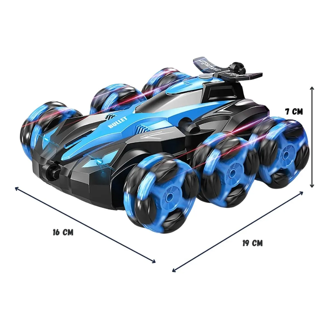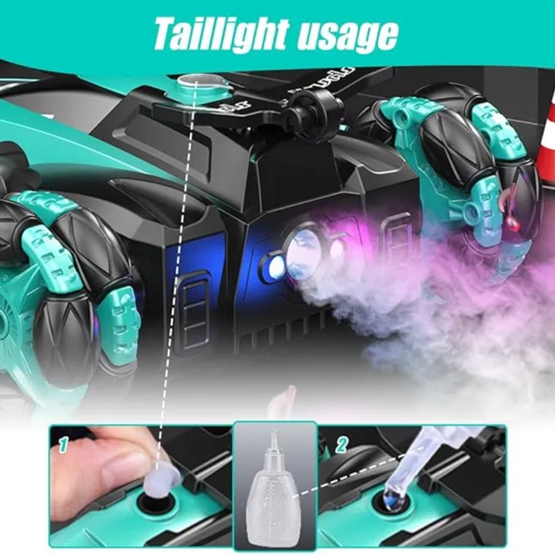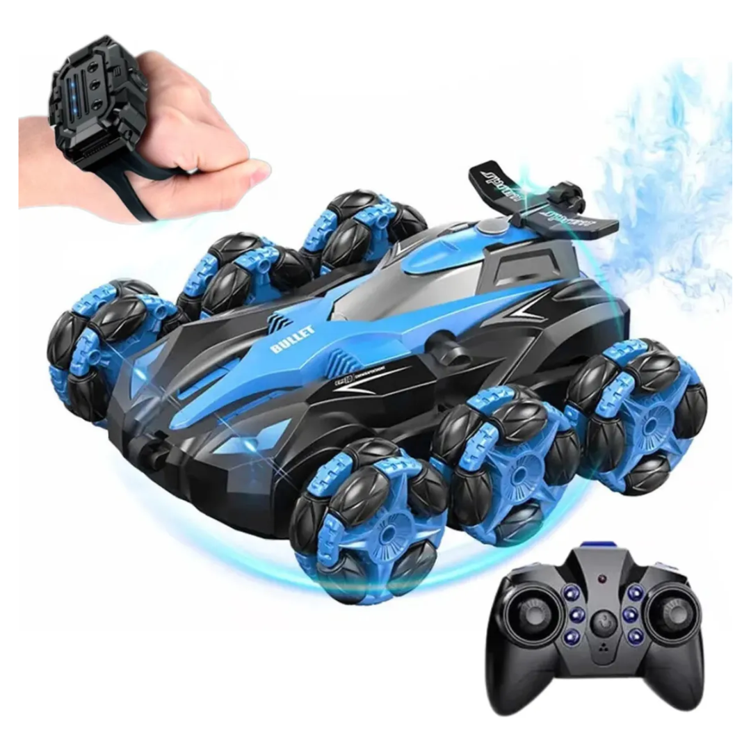 El Carro Acrobático 6 Ruedas es pura adrenalina: combina efectos de humo realistas, luces LED multicolores y un control de pulsera con sensor de movimiento, para que vivas una experiencia de conducción fuera de este mundo. 🌈🚀