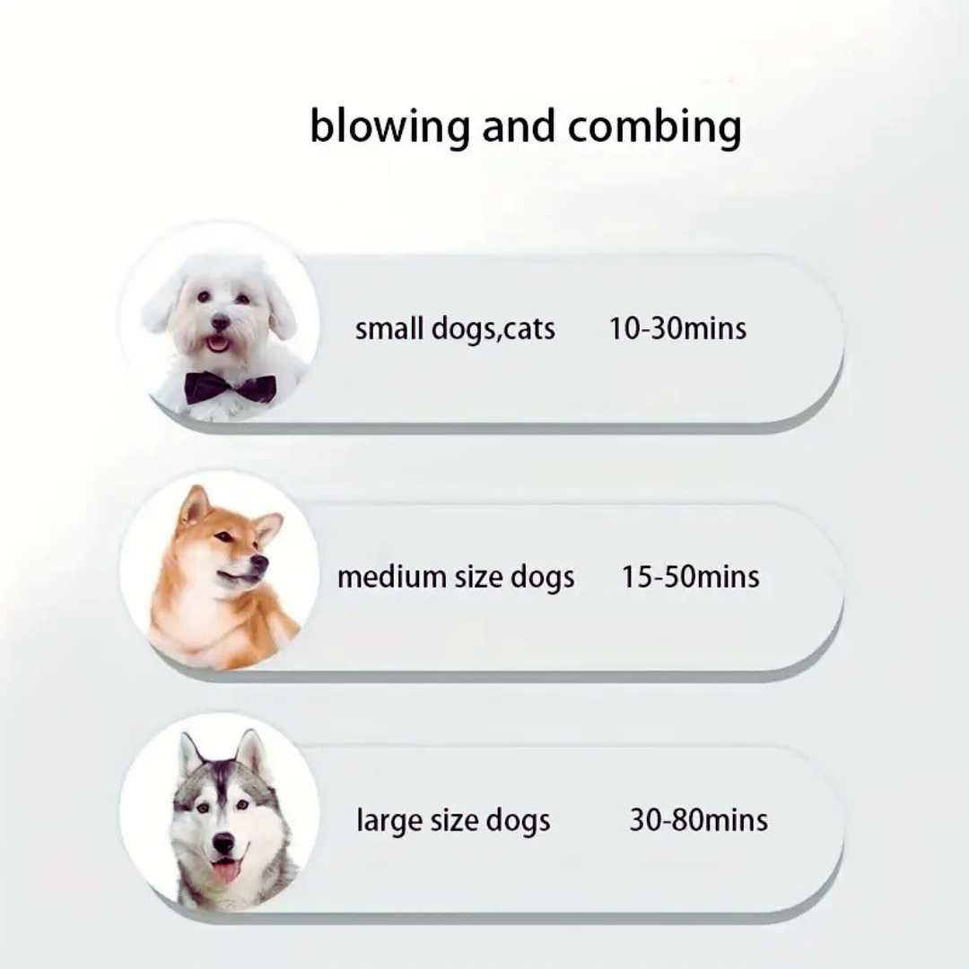 Ya sea después de una ducha o un paseo bajo la lluvia 🌧️, este secador te ayudará a mantener a tu mascota limpia, seca y feliz sin causar estrés.