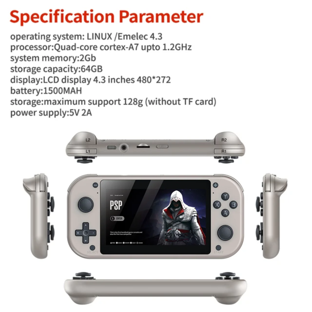 🖥️ Pantalla IPS HD de 4.3”: resolución 480×272 para una experiencia visual nítida y fluida.