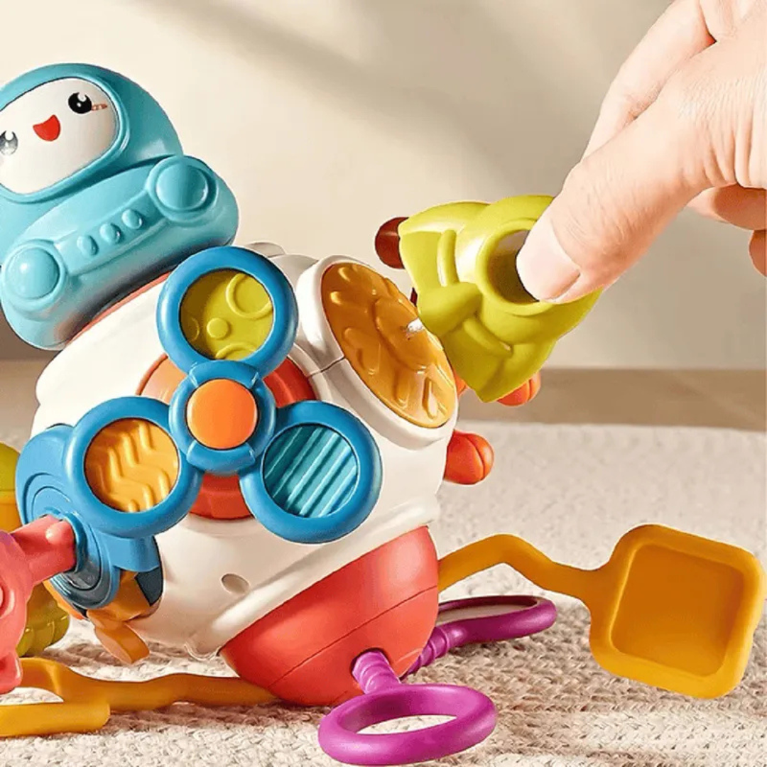 👋 8 actividades interactivas: incluye acciones de agarre, tirón, presión, rotación, sonidos y texturas sensoriales.