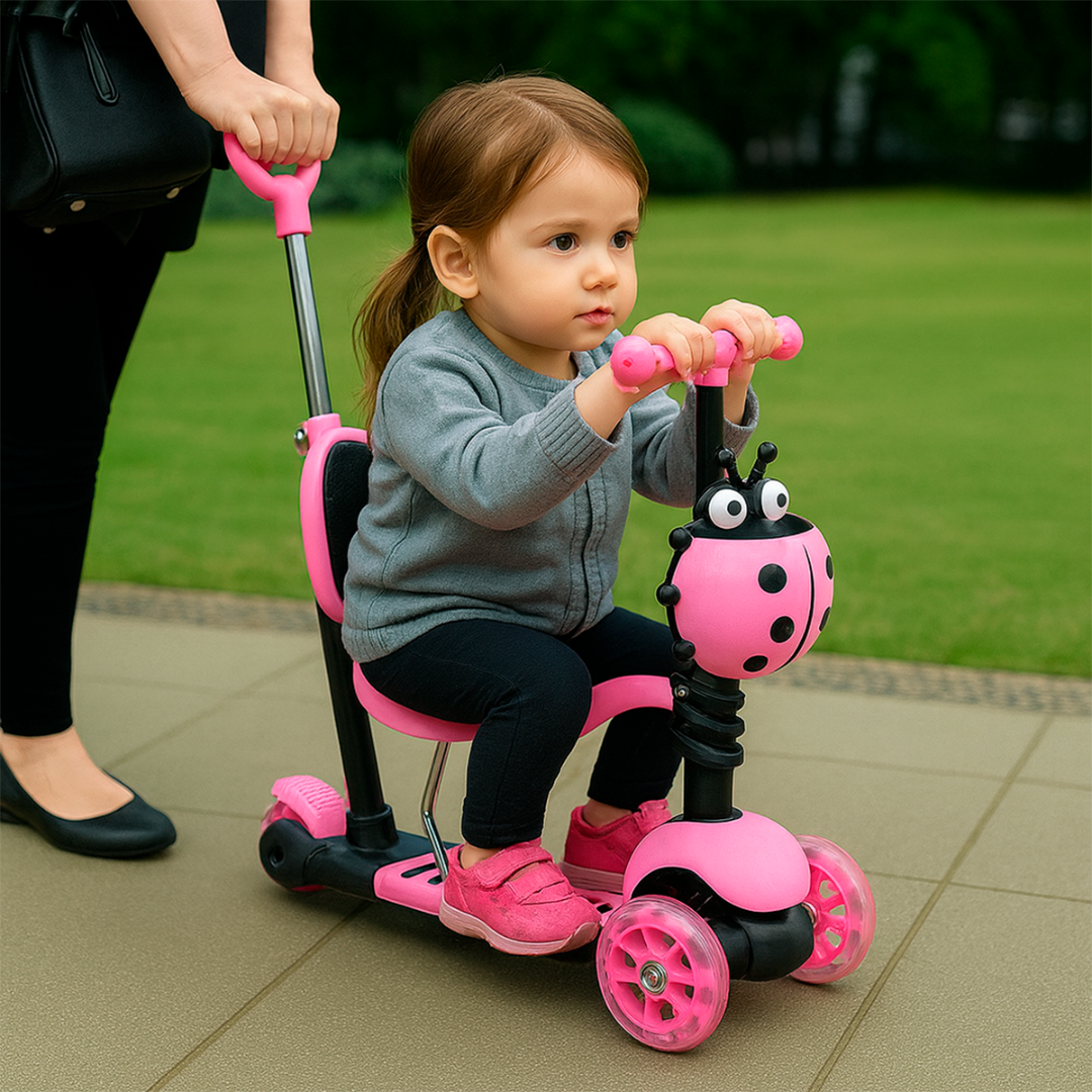 🛴🐞 Monopatín Scooter Mariquita 3 en 1 – Diversión, Color y Seguridad para los Peques 🌈✨