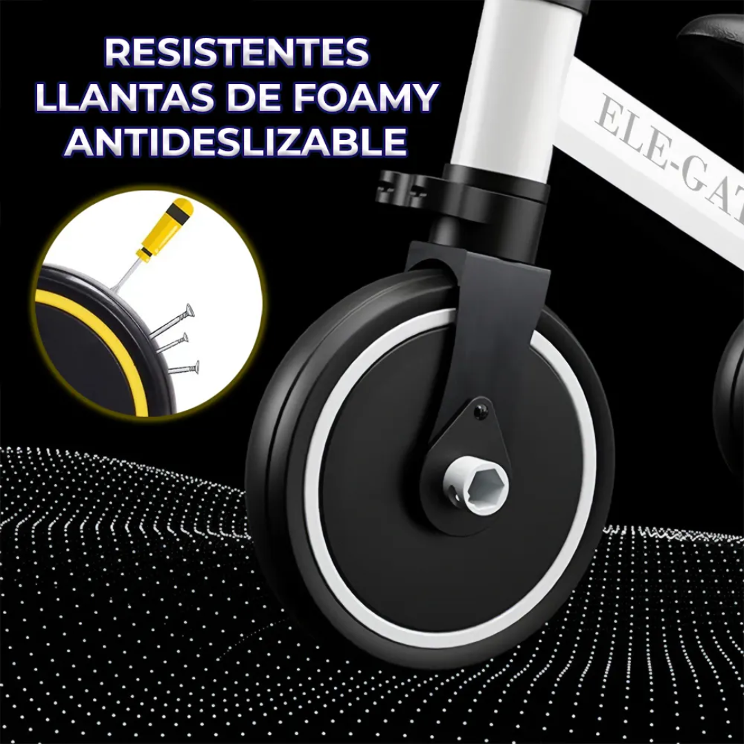 🔄 Diseño 5 en 1: se transforma fácilmente de triciclo a bicicleta, adaptándose al crecimiento y habilidades de tu hijo.